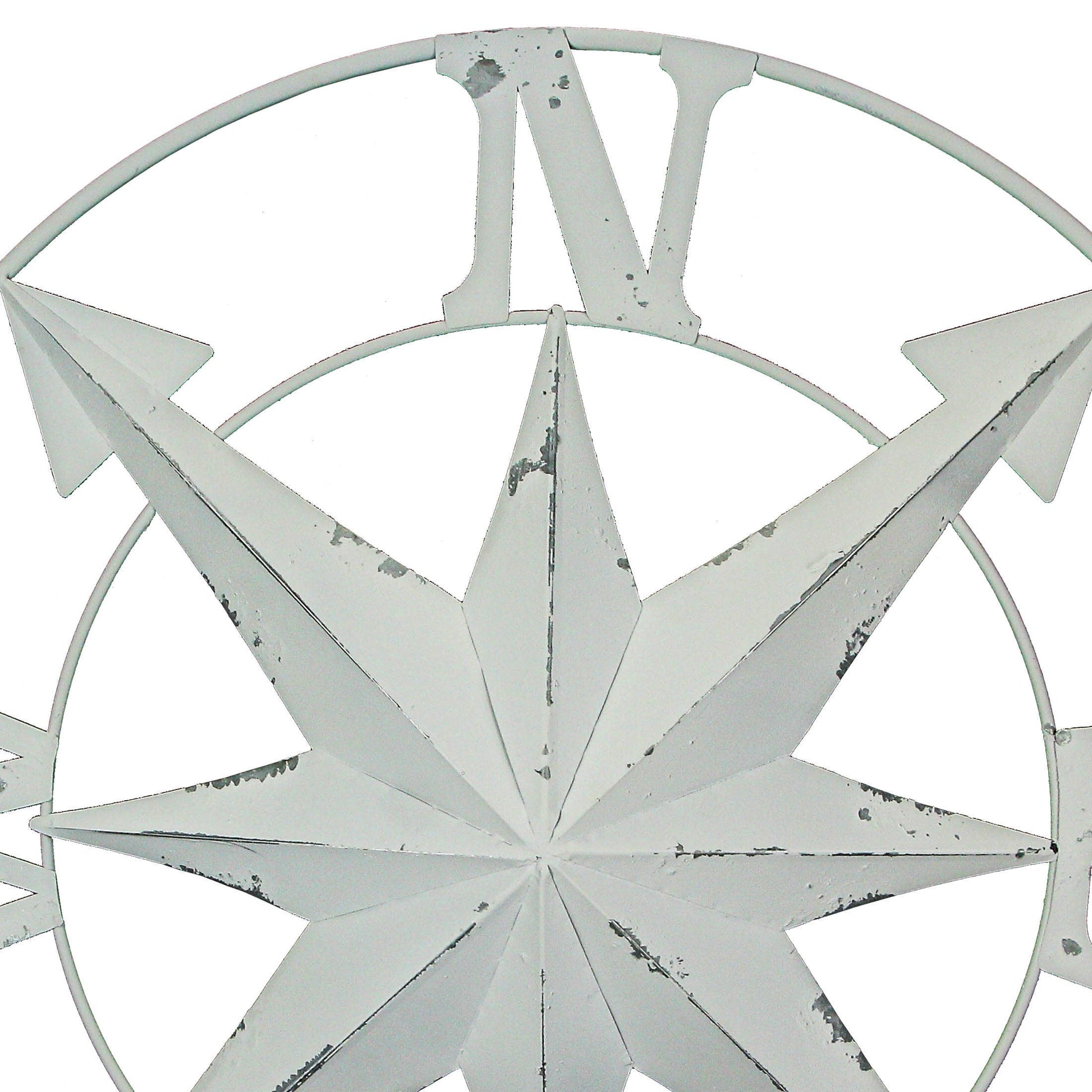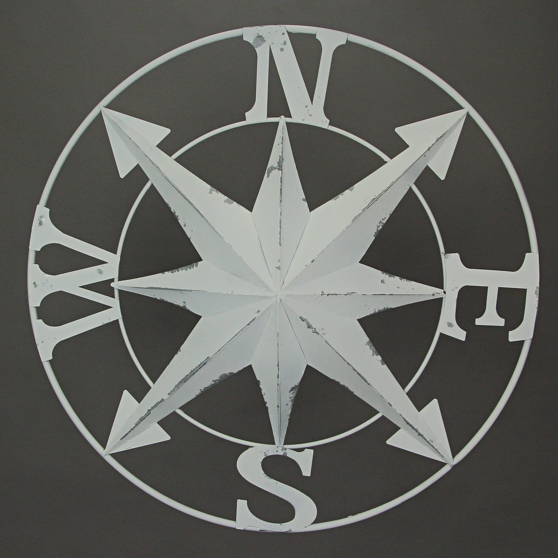 Add a dash of vintage coastal style to your home with this decorative compass wall sculpture. Creatively crafted from metal for a durable and lasting sculpture, the rustic aged white paint finish gives it a timeless look that is sure to compliment a variety of home decor styles.