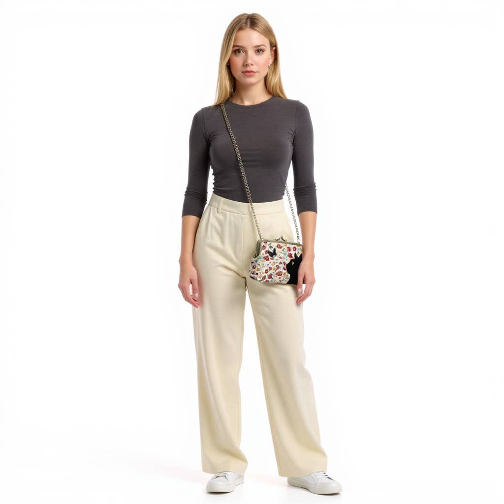 Embrace whimsical charm with the Floral Black Cat Kisslock Bag, a delightful accessory that combines playful design with elegant floral motifs and the mysterious allure of a black cat. This bag is perfect for those who appreciate unique and eye-catching fashion pieces.