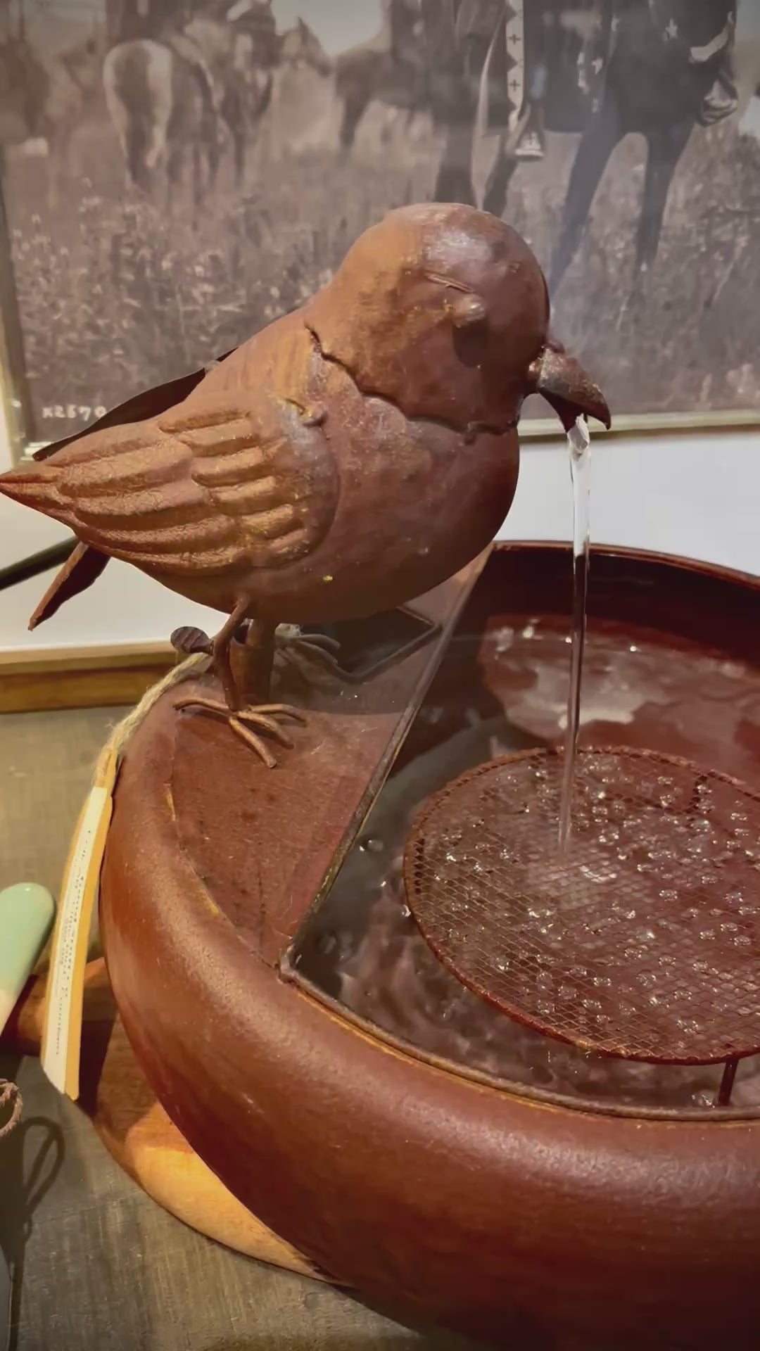 A charming addition to any patio or garden, this folk art inspired little bird fountain features an aged, rusted metal finish. Submersible pump included with adjustable water flow. Splash screen included.