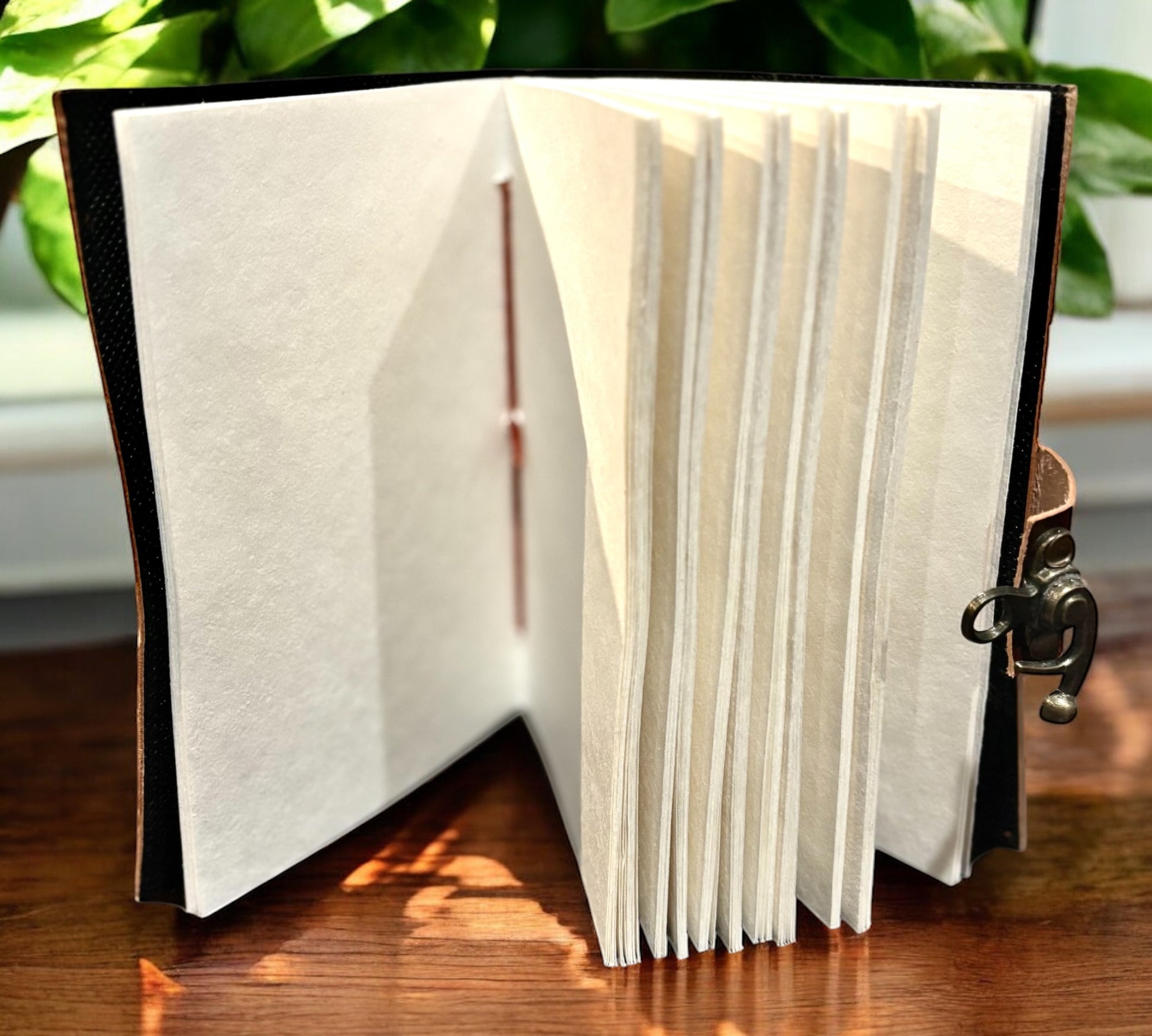 Hand-stitched binding ensures the pages stay secure, providing a long-lasting notebook or sketchpad.