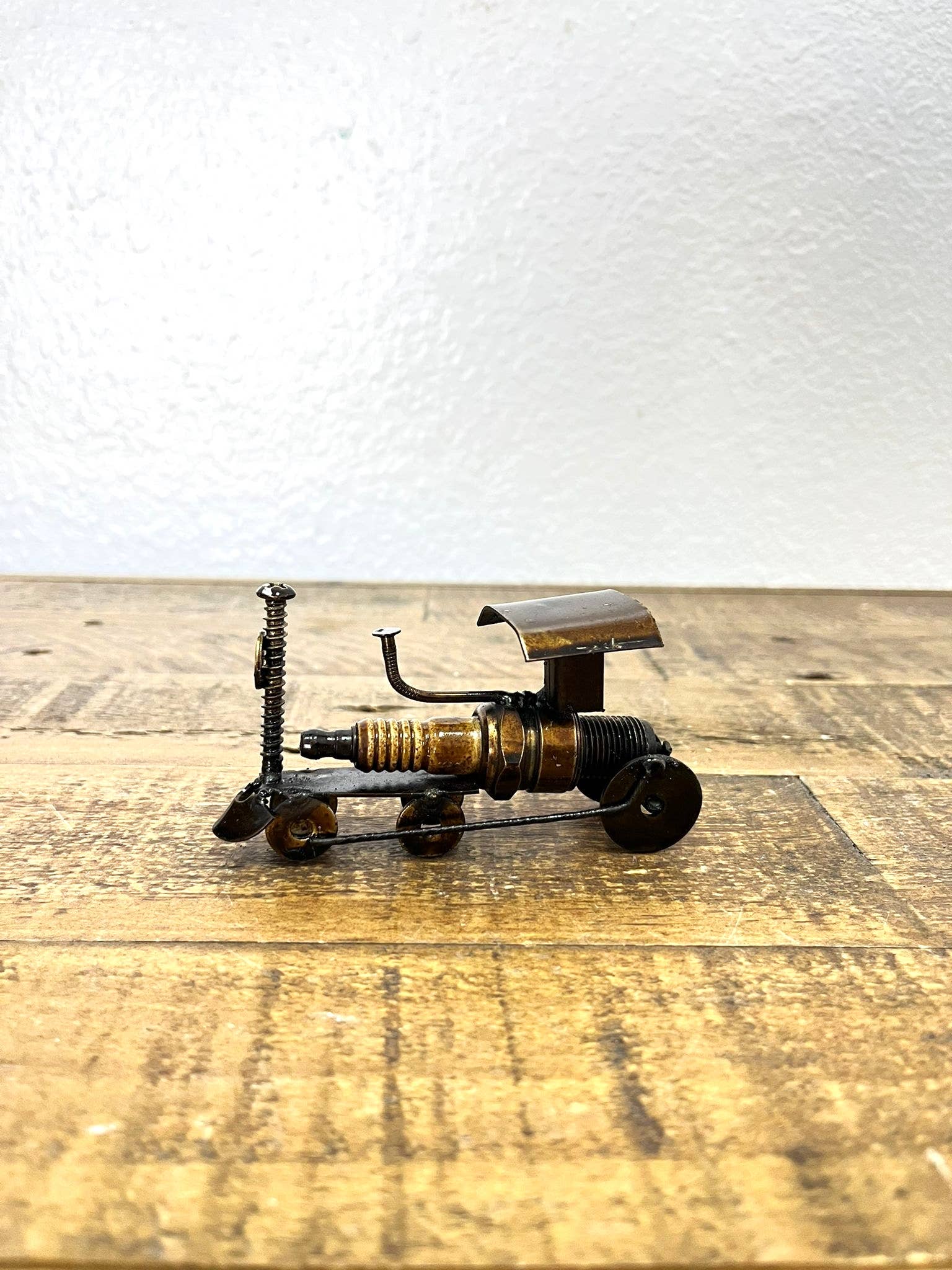 This "scrap metal" or "upcycled art" style is popular for its industrial aesthetic and creative repurposing of materials, appealing to car enthusiasts and fans of eco-friendly art. This would make a perfect gift!