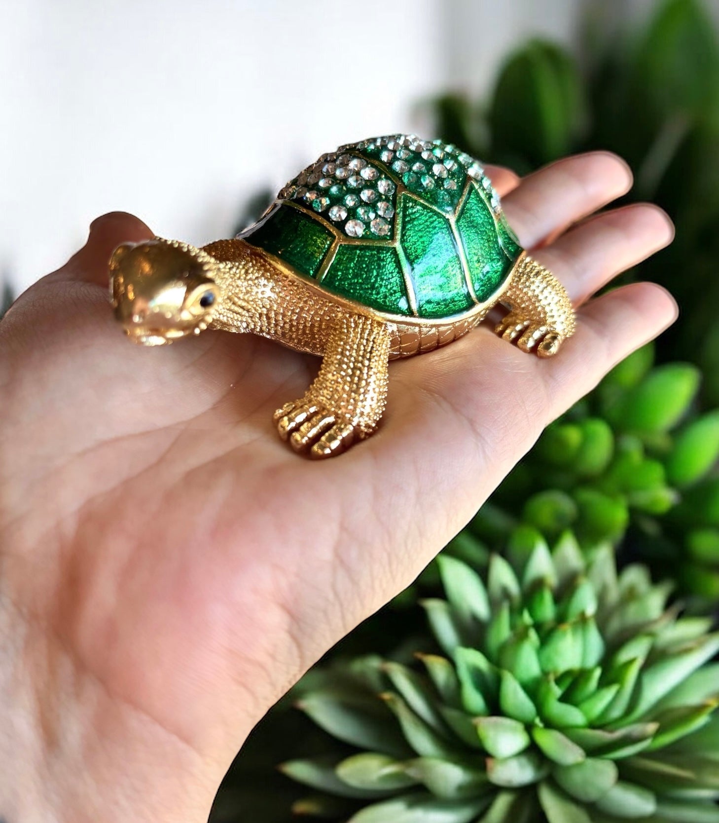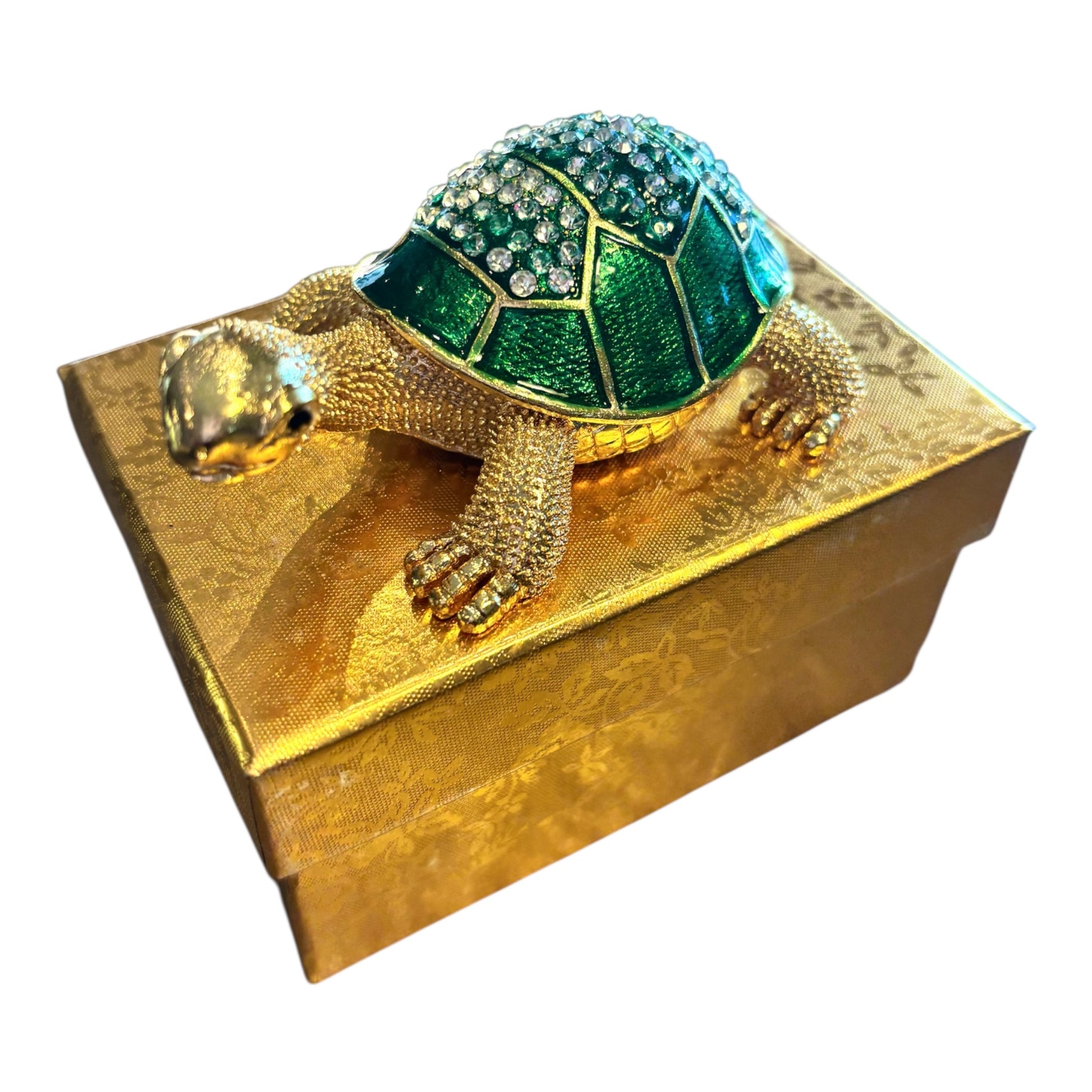 This jeweled enameled tortoise trinket box is not only a stylish addition to your home but also makes a thoughtful and unique gift for any tortoise lover. Its sturdy construction ensures durability, so you can enjoy this charming keepsake for years to come.