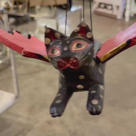 Our Flying Winged Cats are handcrafted in Bali by talented Balinese crafts people. Albesia wood is carved and whimsically painted by hand.